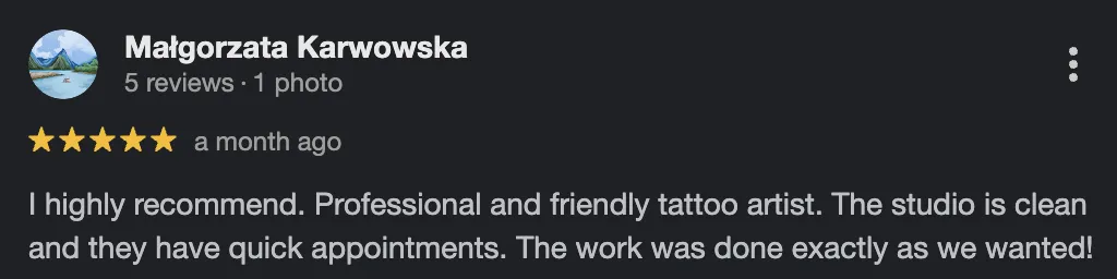 A consultation varies depending on your previous experience. We will be happy to answer all your questions and prepare you for your tattoo session in the best possible way.